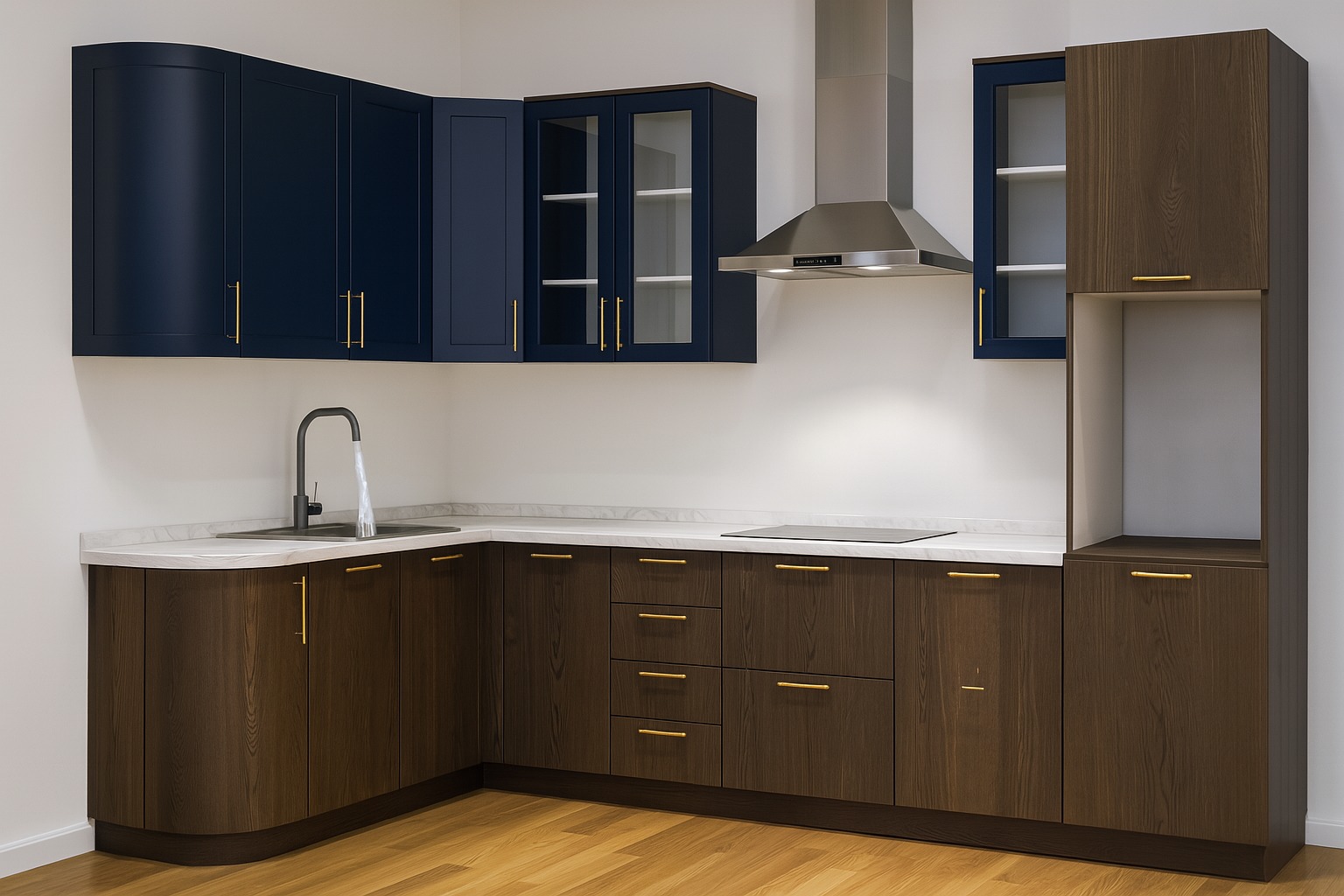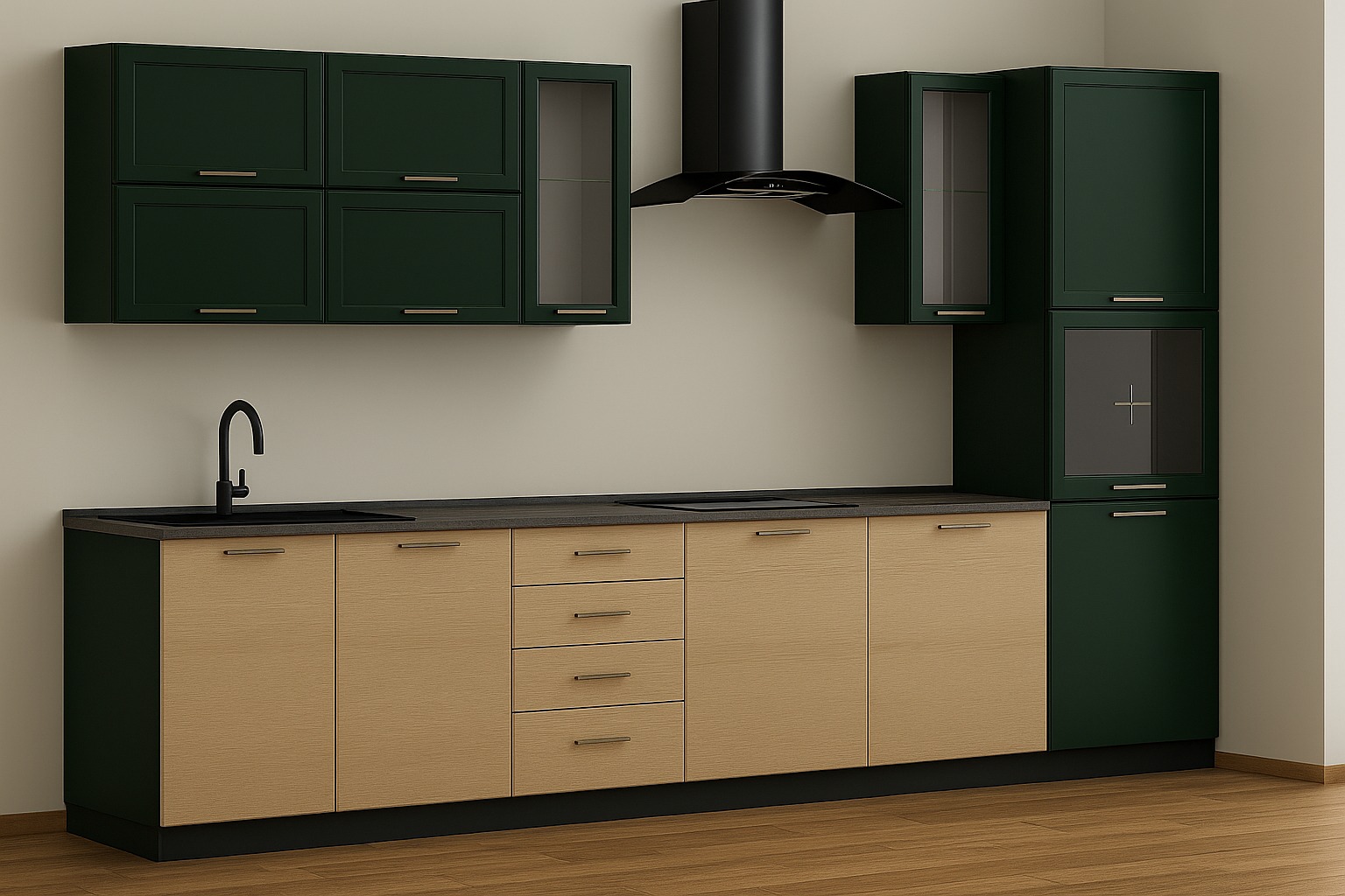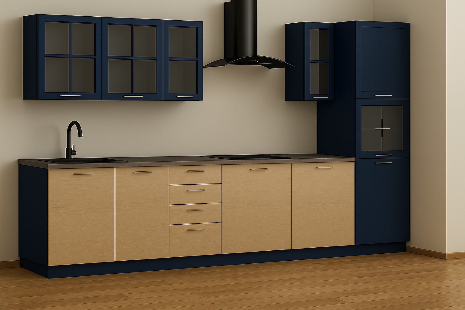 - Использование текстур и фурнитуры из библиотек (Blum, Egger, Enrico Cassina)